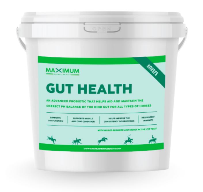 Max Gut-Health is an advanced equine gut supplement combining live yeast and marine algae to support beneficial digestive flora. Ideal for horses under stress or dietary change, improving fibre digestion and overall gut balance.