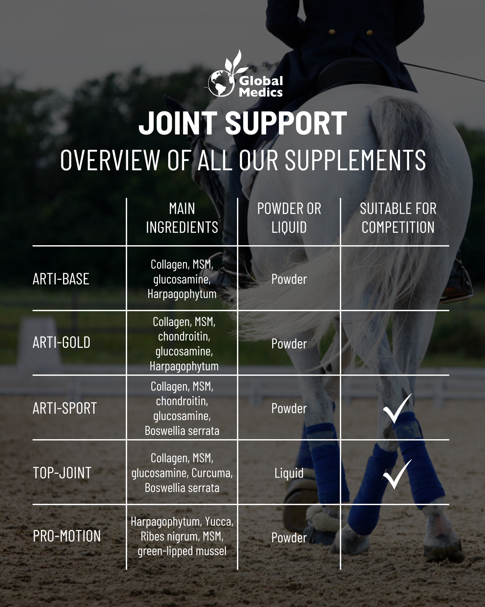 - Bij paarden met chronische ongemakken zoals artrose, spierstijfheid of peesblessures